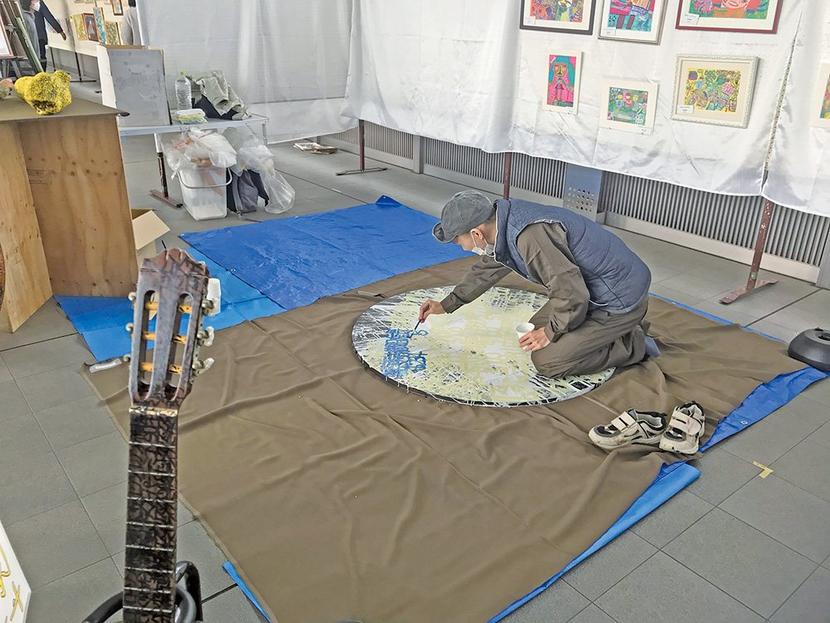 周南市の徳山駅前図書館1階で18日(月)までひらかれている障がいがある人の芸術作品展「みちあふれる表現」の開催第10回を記念し、同駅南北自由通路とインフォメー...