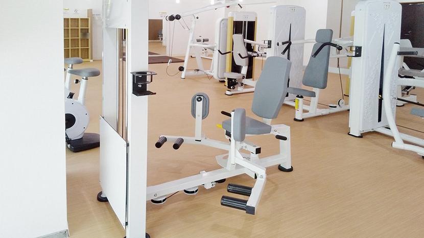 施設内にはショルダープレスやチェストプレスのほか8種類、合計14台のフィットネスマシンを用意。