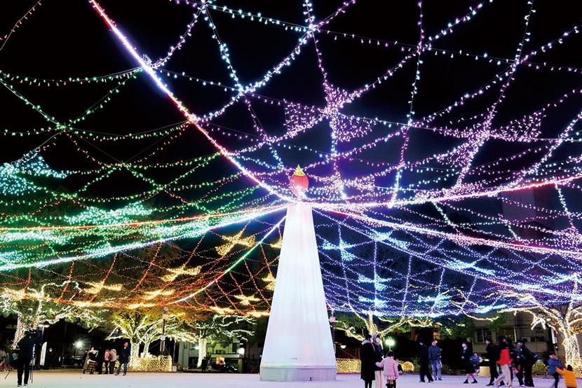 周南市の青空公園からPH通り、御幸通、徳山駅前までを約100万個のLED電球が彩る「周南冬のツリーまつり」の点灯式が1日、青空公園で開催された。 主管を務め...