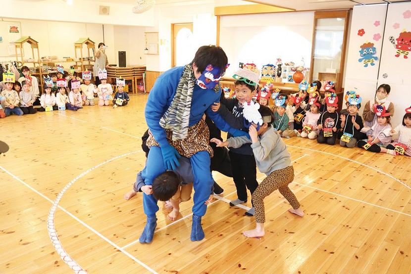 鬼と相撲を取る園児