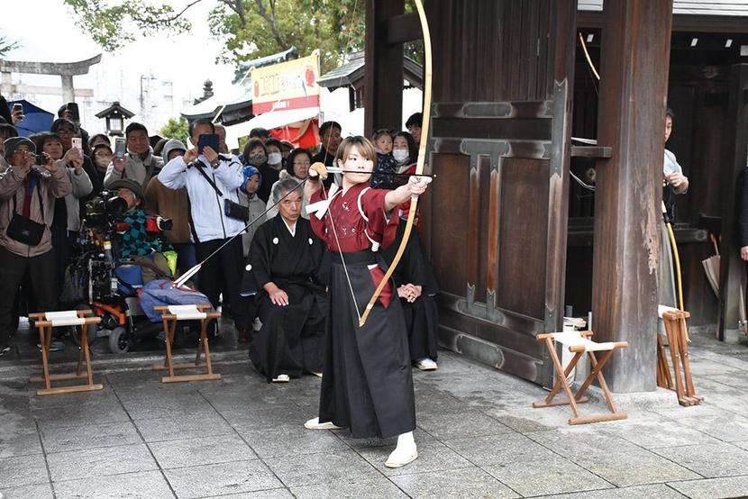 3日は節分。山口県周南市の遠石八幡宮(黒神直大宮司)では雨のため豆まき神事は「豆配り」になったが、矢で射て厄を払う奉射演武で盛り上がった。宮の前の山﨑八幡宮(...