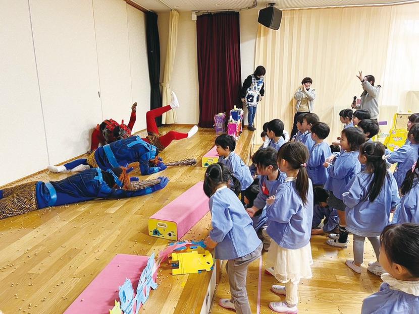 愛光幼稚園の園児らと鬼