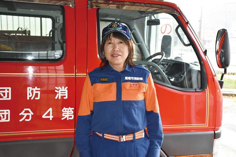 【周南】[周南市消防団]「地域から頼られる存在に」 周南市消防団に女性初の分団長 内山さん(中須)就任