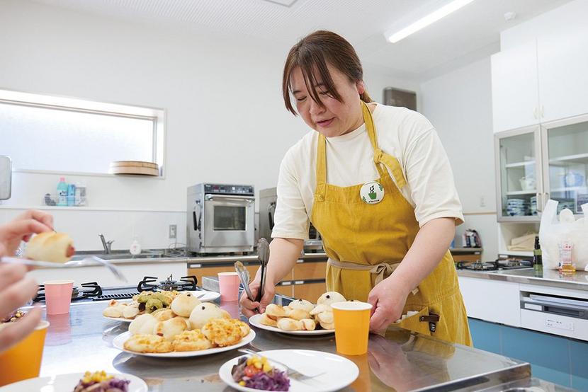 県内各地で生米を使った「お米のぱん教室」を開き防府市でサロンを営む小川奈美さんが4月18日、周南市遠石の万葉プラザで足揉みセラピストの上野有紀さん、中村もち子...