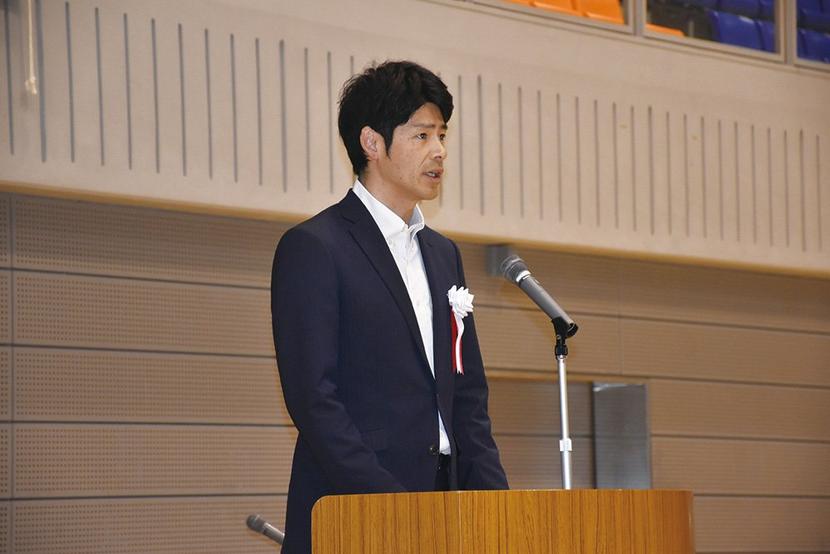 あいさつする東本部長