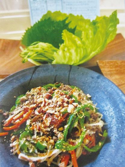 「合ひき肉とピーマンの春雨炒め」(周南市提供)