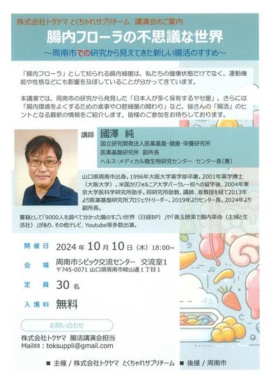 【周南】[㈱トクヤマ]「腸内フローラの不思議な世界」 10月10日・腸内研究の國澤さんが講演