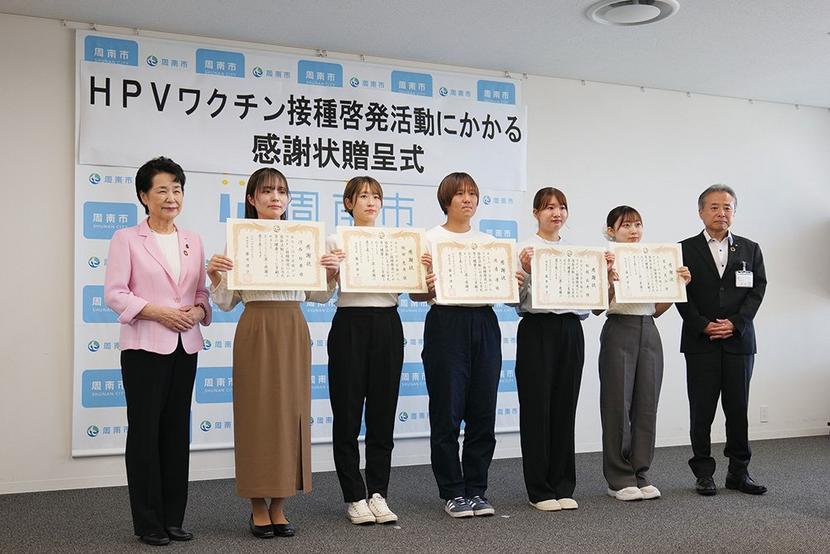 【周南】周公大生に市から感謝状 子宮頸がん予防の啓発活動