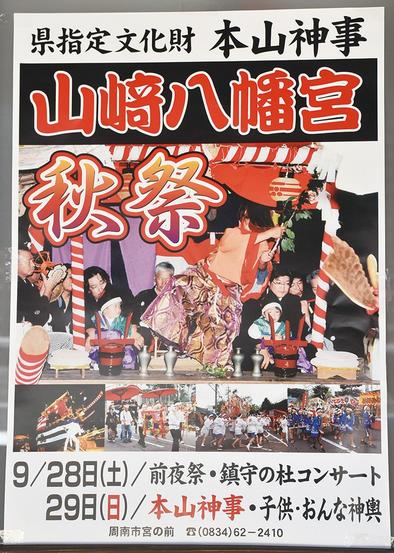 境内の坂を引き上げた本山を最後に突き落とす本山(ほんやま)神事で知られる周南市の山﨑八幡宮(河谷和典宮司)の秋季例大祭が29日に開かれる。 1702年から続...