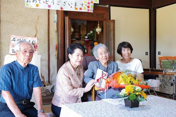 【周南】100歳の石川さん祝福 市長が自宅訪問 「祝ってもらえて幸せな人生」