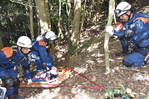 下松市と光市の市境にある人気ハイキングコースの茶臼山で19日、光地区消防本部と下松市消防本部の山岳救助合同訓練が初めて開かれ、遭難者2人を協力して救助、搬送し...