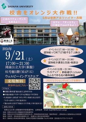 周南市の周南公立大(髙田隆学長)が21日(土)午後5時から9時まで、「校舎をオレンジ大作戦!!」と題してS1号館校舎を認知症の普及啓発のシンボルカラーのオレン...