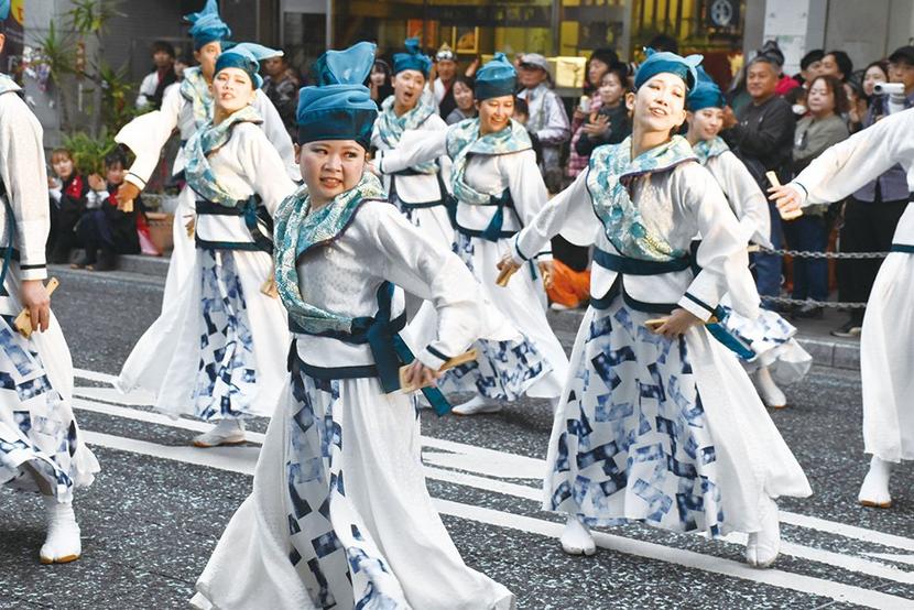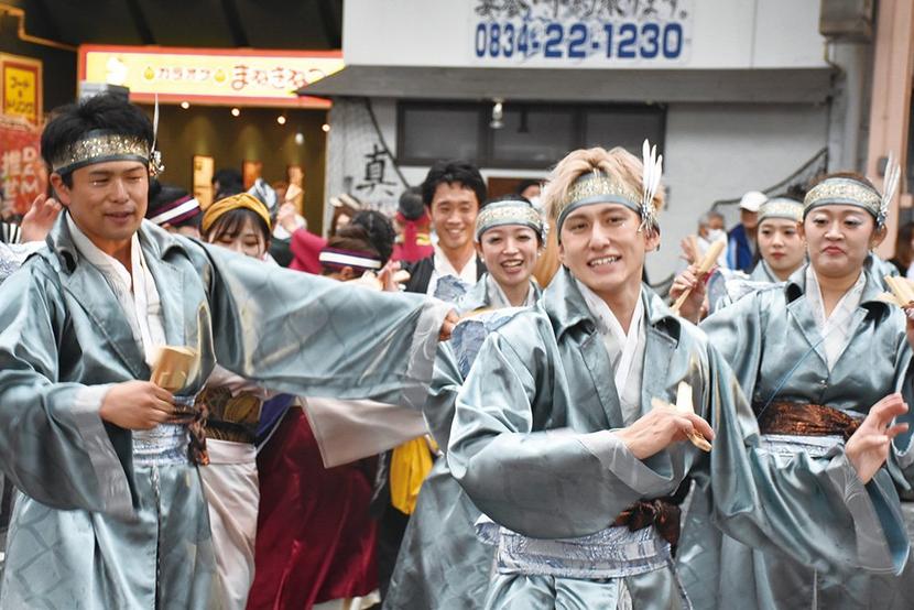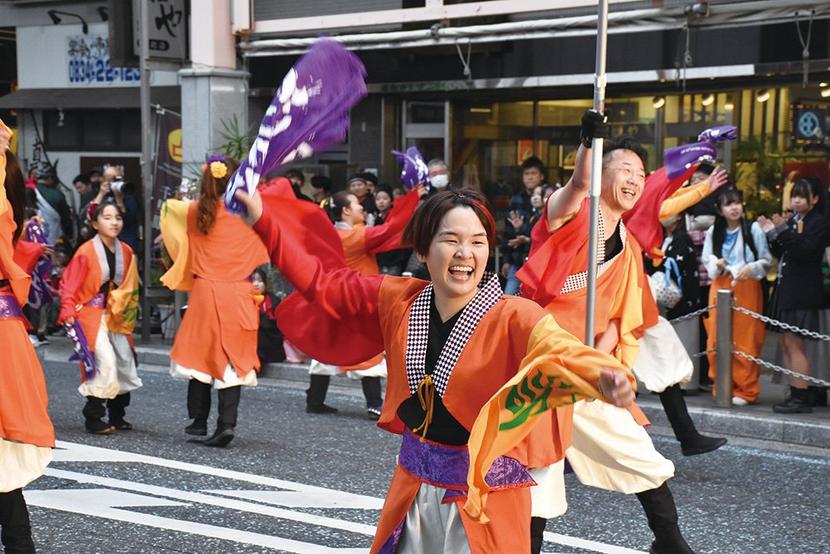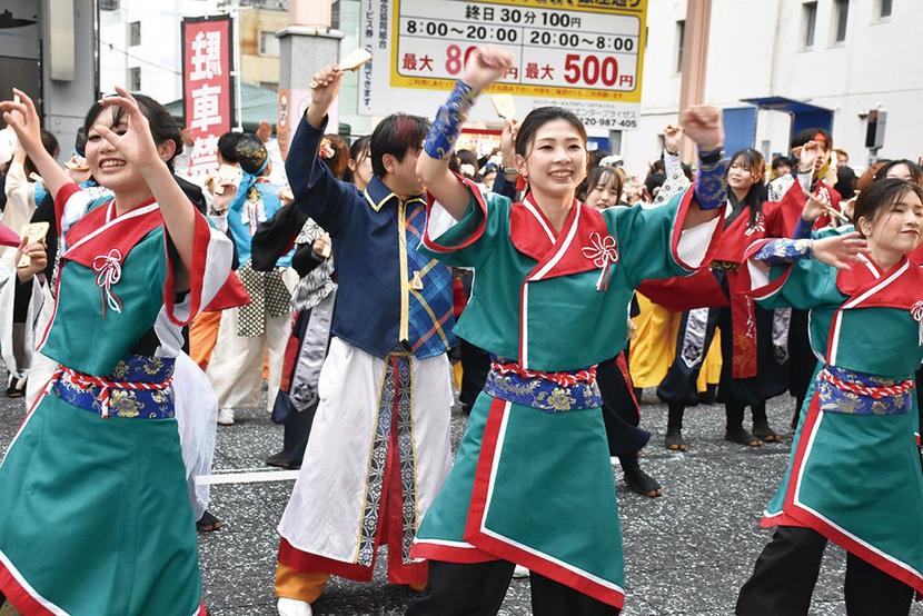 10日、県内外や韓国の釜山からも参加した46チーム、650人の踊り手が周南市の銀座の商店街を埋め尽くしたYOSAKOIぶち楽市民祭(ぶちたのしみんさい=新周南...
