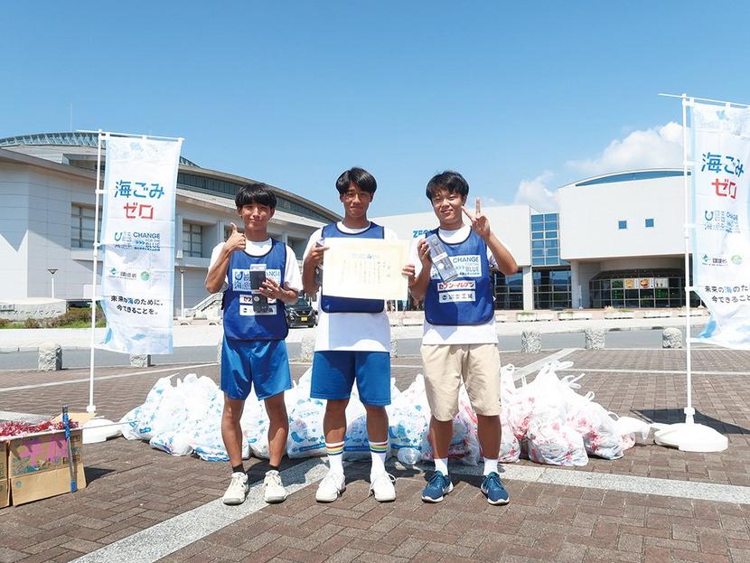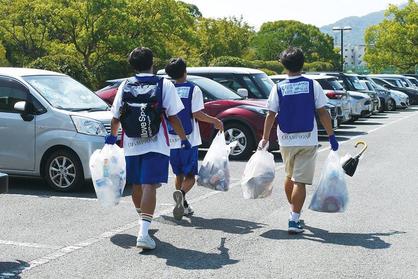 高校生が1時間で拾ったごみの質と量をポイント化して競う「スポGOMI甲子園」の県大会で、徳山商工高(庄田敦紀校長)のハンドボール部員で作ったチーム「新NAKU...
