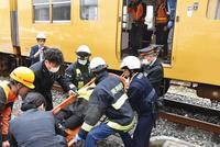 【周南】踏切事故で負傷者多数 消防、警察、JRが連携訓練