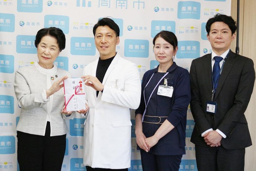 周南市南浦山町の医療法人周友会徳山病院(高山成吉理事長)がクリスマスイヴの24日、同市に30万円を寄付した。この日、高山成政副院長らが市役所を訪れ、藤井律子市...