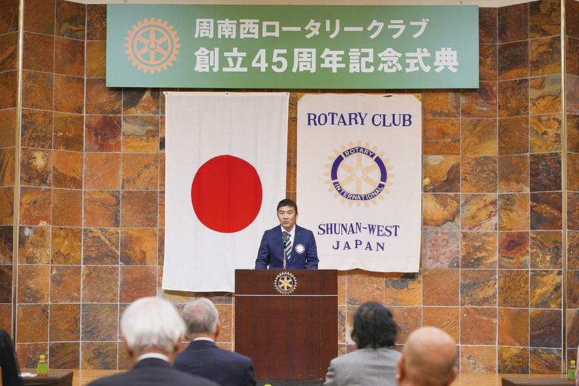 周南市の周南西ロータリークラブ(RC=金岡泰成会長)は1日、遠石会館で創立45周年記念式典を開いた。 同RCは徳山RCがスポンサーとなって旧徳山市時代の19...