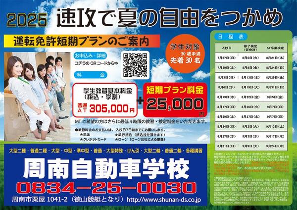 【周南】「速攻で夏の自由をつかめ」 周南自動車学校短期プラン