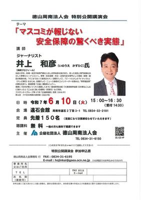 周南市遠石の遠石会館で6月10日(火)、徳山周南法人会(平岡英雄会長)の特別公開記念講演会「マスコミが報じない安全保障の驚くべき実態」が開かれる。先着150人...