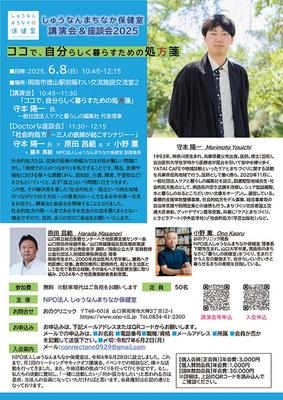 しゅうなんまちなか保健室講演会&座談会2025「ココで、自分らしく暮らすための処方箋」が6月8日(日)午前10時45分から周南市の徳山駅前図書館交流室...