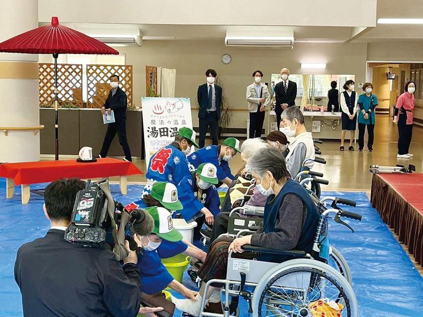 周南市の新南陽若山ライオンズクラブ(LC=原英二会長)は4月29日、特別養護老人ホーム福寿荘で足湯サービス、三味線や日本舞踊を披露する慰問行事を開いた。 福...