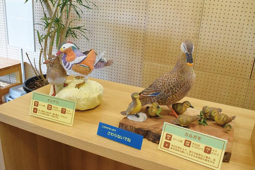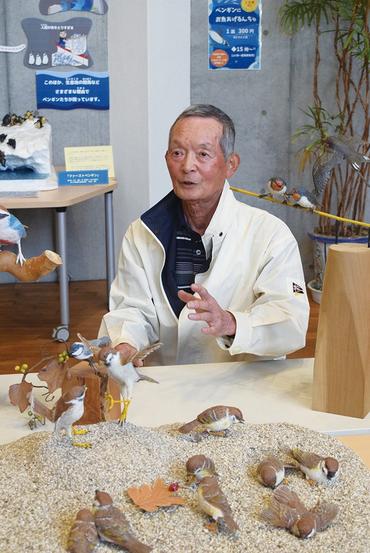 周南市の徳山動物園(長畠和彦園長)に岩国市の中川敏彰さん(81)から野鳥の木彫作品で着色したバードカービングの作品約30点が寄贈され、12日に園内の自然学習館...
