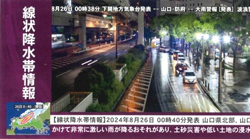 周南市の㈱シティーケーブル周南(CCS)は11日、自主制作の12チャンネルで「線状降水帯情報」の放送開始を発表した。 この放送は気象庁による予測情報を、画面...