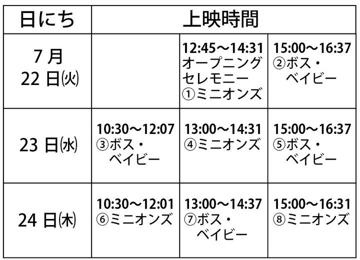 上映するのは「ミニオンズ」と「ボス・ベイビー」。7日(月)まで申し込みを受け付けている。