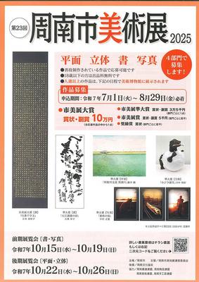周南市が第23回周南市美術展2025の開催要項を公表した。会期は10月15日(水)から26日(日)までで、会場は市美術博物館。7月1日(火)から8月29日(金...