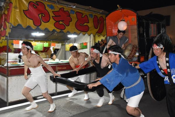 周南市鹿野の鹿野天神祭が30日(水)夕に開かれ、露店が並ぶ中、裸坊にひかれた網代みこしが勇壮に駆け抜ける。 鹿野地区の二所山田神社の境内にある菅原神社のお祭...