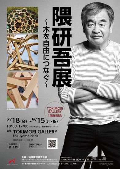 隈研吾展~木を自由につなぐ~が18日(金)から9月15日(月・祝)まで、周南市のJR徳山駅そばのTOKUYAMA DECK 1階にあるTOKIMORI GAL...