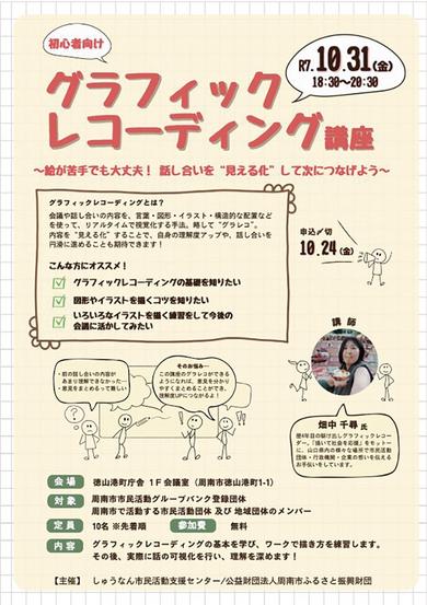 周南市徳山港町の徳山港町庁舎で31日、「グラフィックレコーディング講座〜絵が苦手でも大丈夫!話し合いを見える化して次につなげよう〜」が開かれる。 グラフィッ...