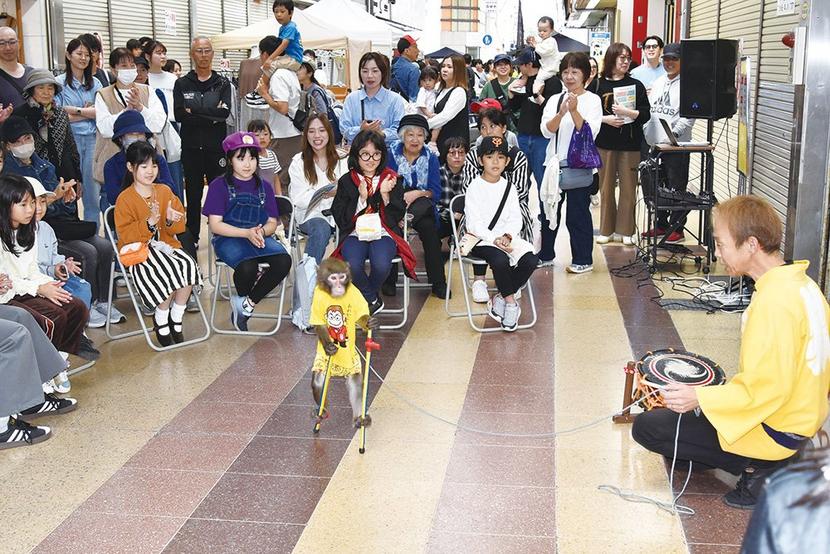 たくさんの人が集まった猿まわし