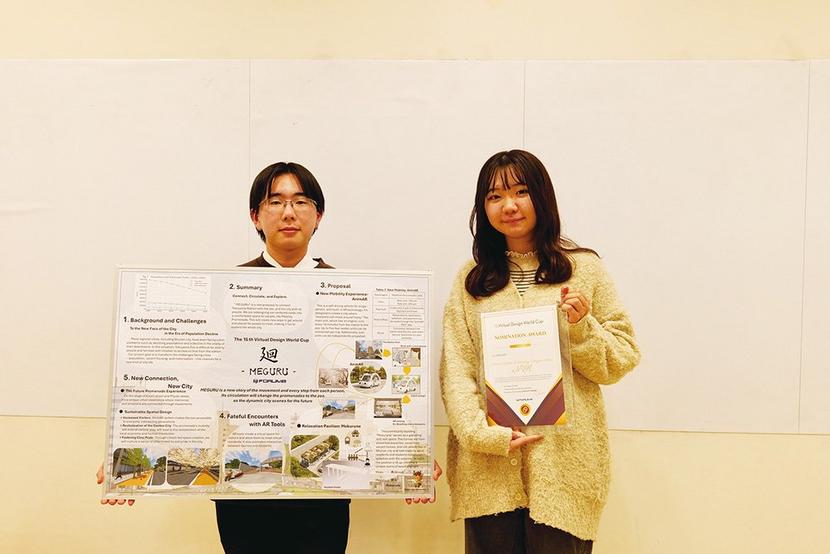 ノミネート賞を受賞したのは専攻科2年で建築を学ぶ工藤瑞希さん、永田晴輝さん、中村元介さんの作品「MEGURU」。