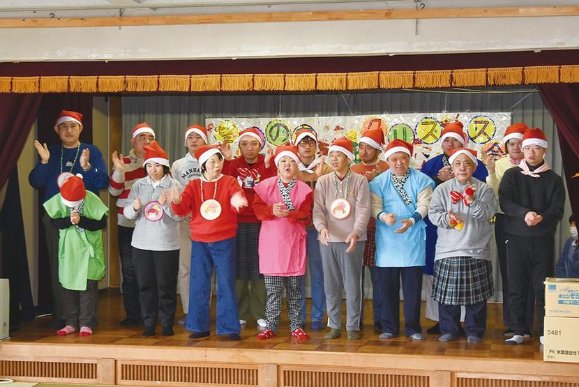 周南市岡田町の障害者施設「望みの家」(牧野泰郎施設長)のクリスマス会が13日、老人休養ホーム嶽山荘で開かれた。利用者18人と家族、ボランティアなどを合わせて5...