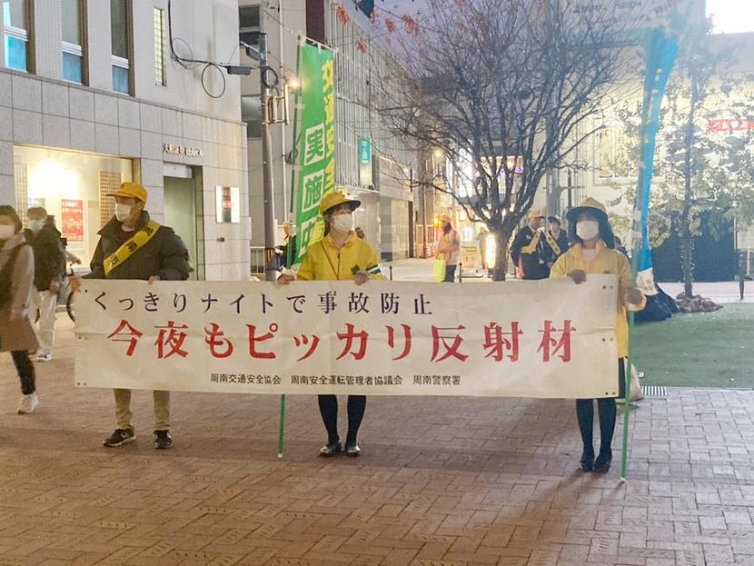 周南市交通安全対策推進協議会(会長:藤井律子市長)は18日、徳山駅前の噴水広場周辺で年末年始の交通安全県民運動「飲酒運転根絶&くっきりアップ作戦」を実...