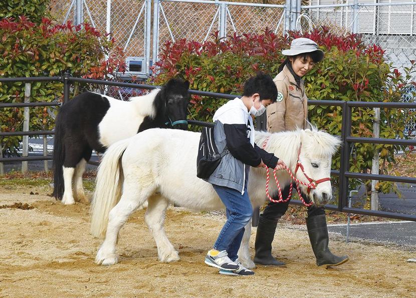周南市の徳山動物園(長畠和彦園長)の馬の仲間はポニーが3頭とグラントシマウマが2頭。小型の馬のポニーは手綱を持って飼育場を一周する「引馬体験」もでき、子どもた...