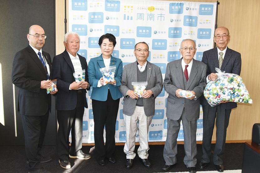 周南市老人クラブ連合会(岸村敬士会長)は7日、市のペットボトルキャップ回収支援事業に賛同して昨年6月から12月までの半年でキャップ16万個、320キロを集めた...