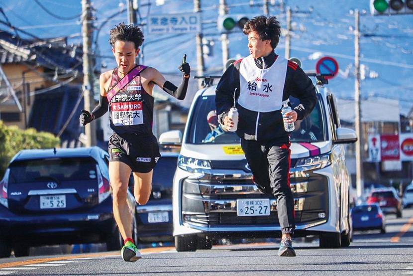 レースは終始ハイペース。「正直、ずっときつかった」と本音を漏らす。それでも沿道からの同期の声に救われた。給水では田中登馬選手、嘉数純平選手の声掛けに思わず笑顔がこぼれた。ラスト3キロ、監督車から声を掛けたのは、同学部で4年間を共にした小林マネージャー。「あの声で全部出し切れました」と話し、区間賞は仲間と一緒につかんだ結果だった。
