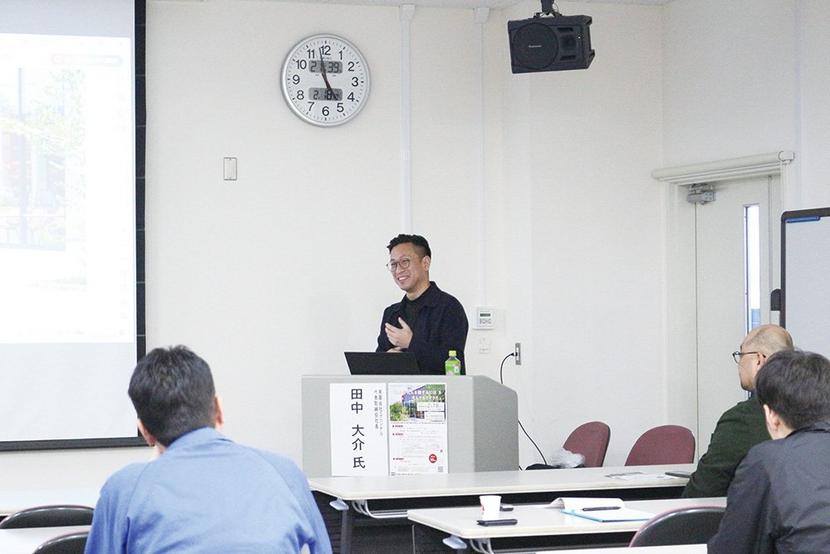 講演する田中社長