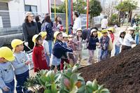 【下松】下松幼稚園園庭に築山 開園100周年・出原さんと園児ら植栽