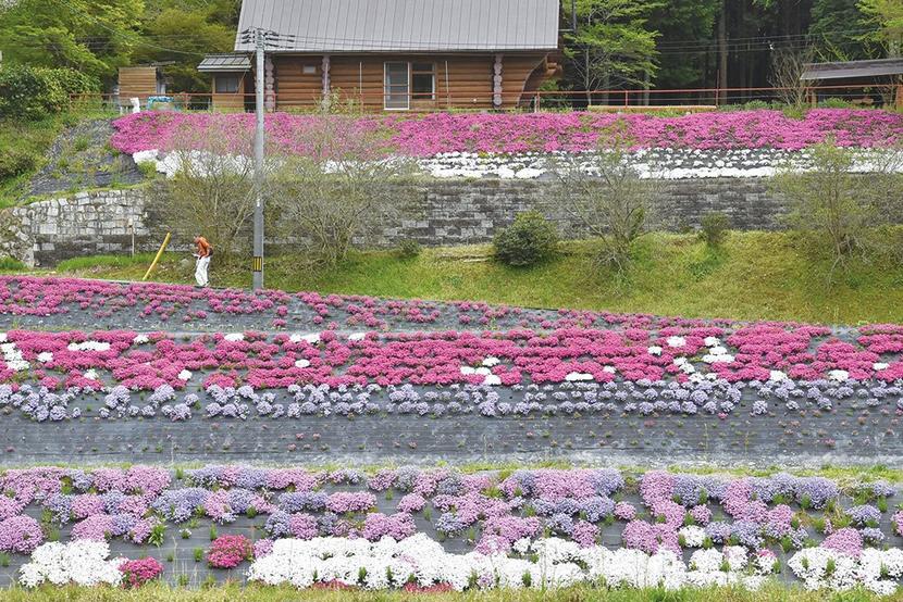 周南市の大道理芝桜まつりが開かれ、棚田ののり面などに植えられた10万株の芝桜が見ごろを迎えている。 18、19日には中須地区の協賛による餅つきやうどんの販売...