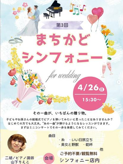 周南市みなみ銀座で楽器販売や楽器修理、音楽教室を手掛ける㈱シンフォニー(河井浩之代表取締役)が26日(日)午後3時30分から、ミニコンサート「第3回まちかどシ...