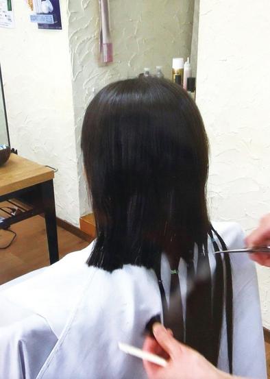 • 髪を切ってもらう金永さん