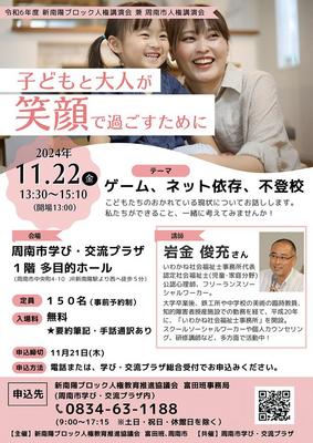 【周南】「子どもと大人が笑顔で過ごすために」 11月22日・ゲーム、 ネット依存、不登校の講演会
