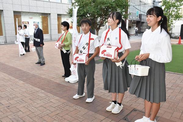 【周南】岐陽中生も街頭で呼びかけ 赤い羽根募金スタート