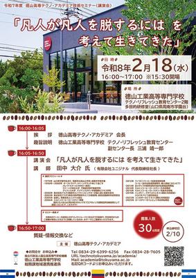【周南】「“凡人が凡人を脱するには”を考えて生きてきた」 18日・徳山高専テクノ・アカデミア技術セミナー
