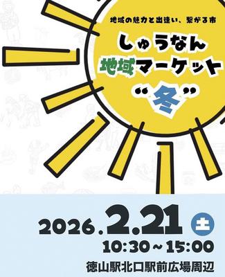 周南市を中心に様々な“地域”の特産品や地産品、地域に根差したお店が並ぶマーケットイベント「しゅうなん地域マーケット“冬”」が21日(土)、徳山駅北口駅前広場周...