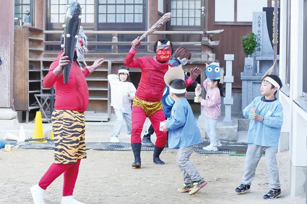 節分の日の3日、周南市の徳山中央保育園、河原幼稚園、しゅうよう保育園、アイグラン保育園新宿通に徳山商工会議所青年部青友会(渡部弘士会長・56人)の会員が扮する...