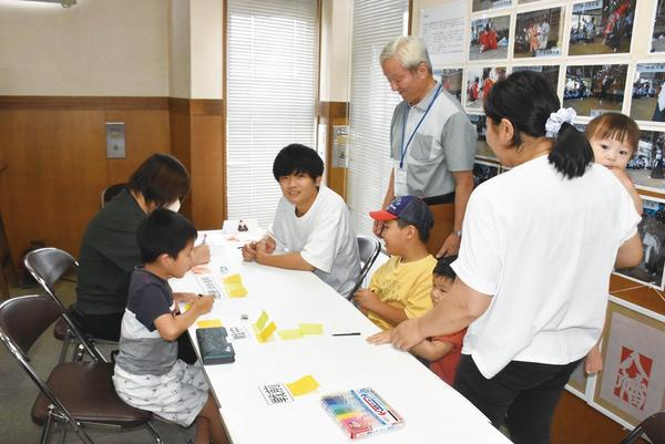 周南市の戦後80年を考える子ども向けワークショップが13日、中畷町の市民俗資料館で開かれ、小学生以下の子ども12人、保護者6人、周南公立大の学生6人が参加。終...